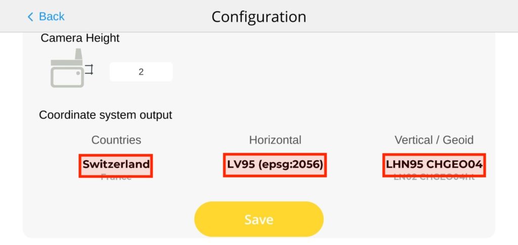 In order to obtain a centimetric accuracy on images’ positions, the exact position of the camera is required. For this, the vertical distance (in centimetres) between the bottom edge of the HaX and the main camera must be indicated in the app.